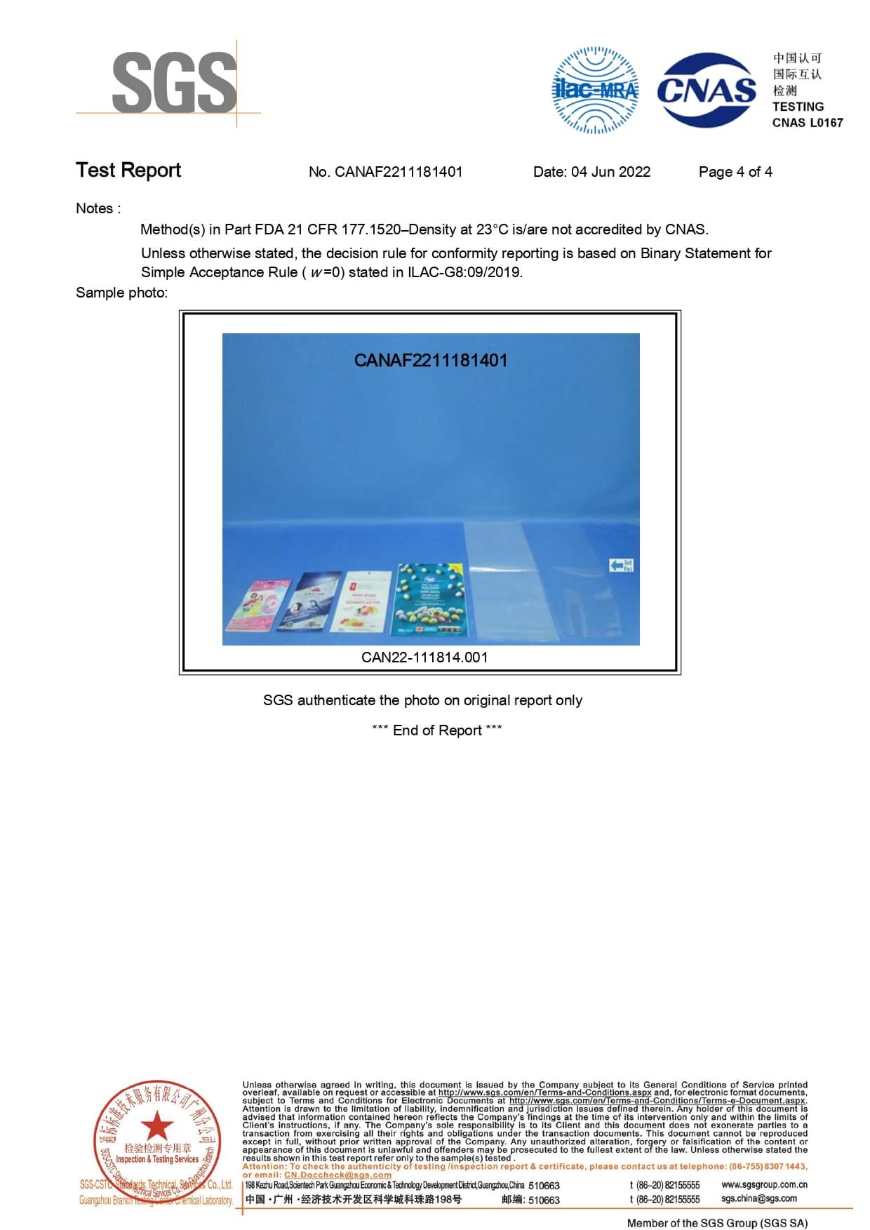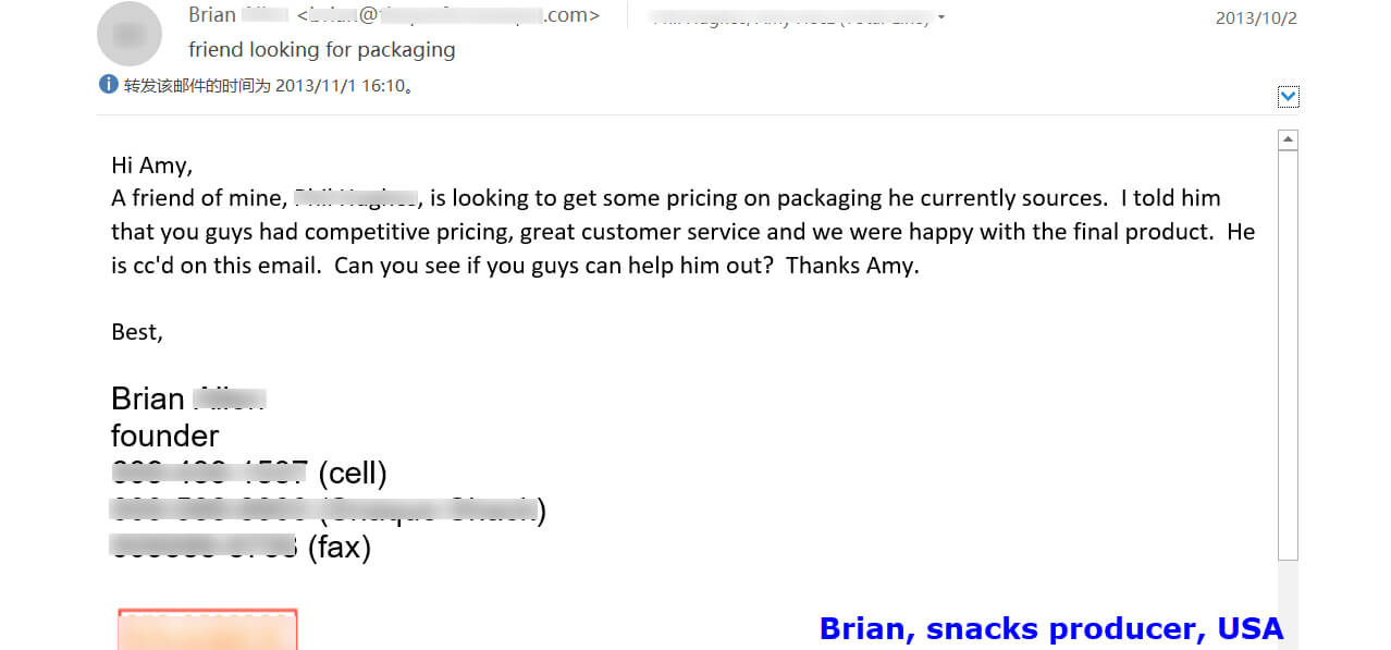 Yes. All our packaging is FDA approved, and our facilities and the process are certified by BRC as a flexible packaging producer for food use.